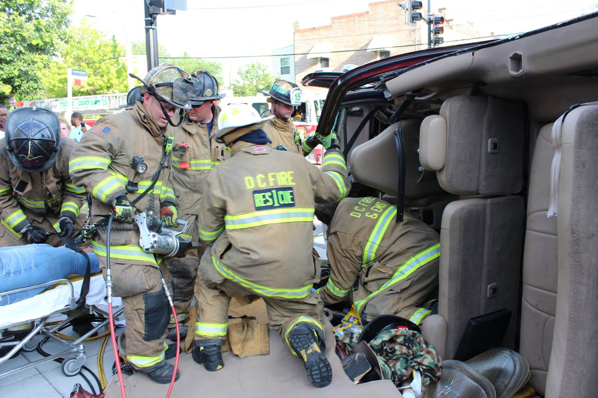 On Sunday, June 19th, units from the District of Columbia Fire/EMS Department responded to the intersection of 4th & Franklin NE for a motor vehicle accident, arriving to find two victims trapped in an SUV.