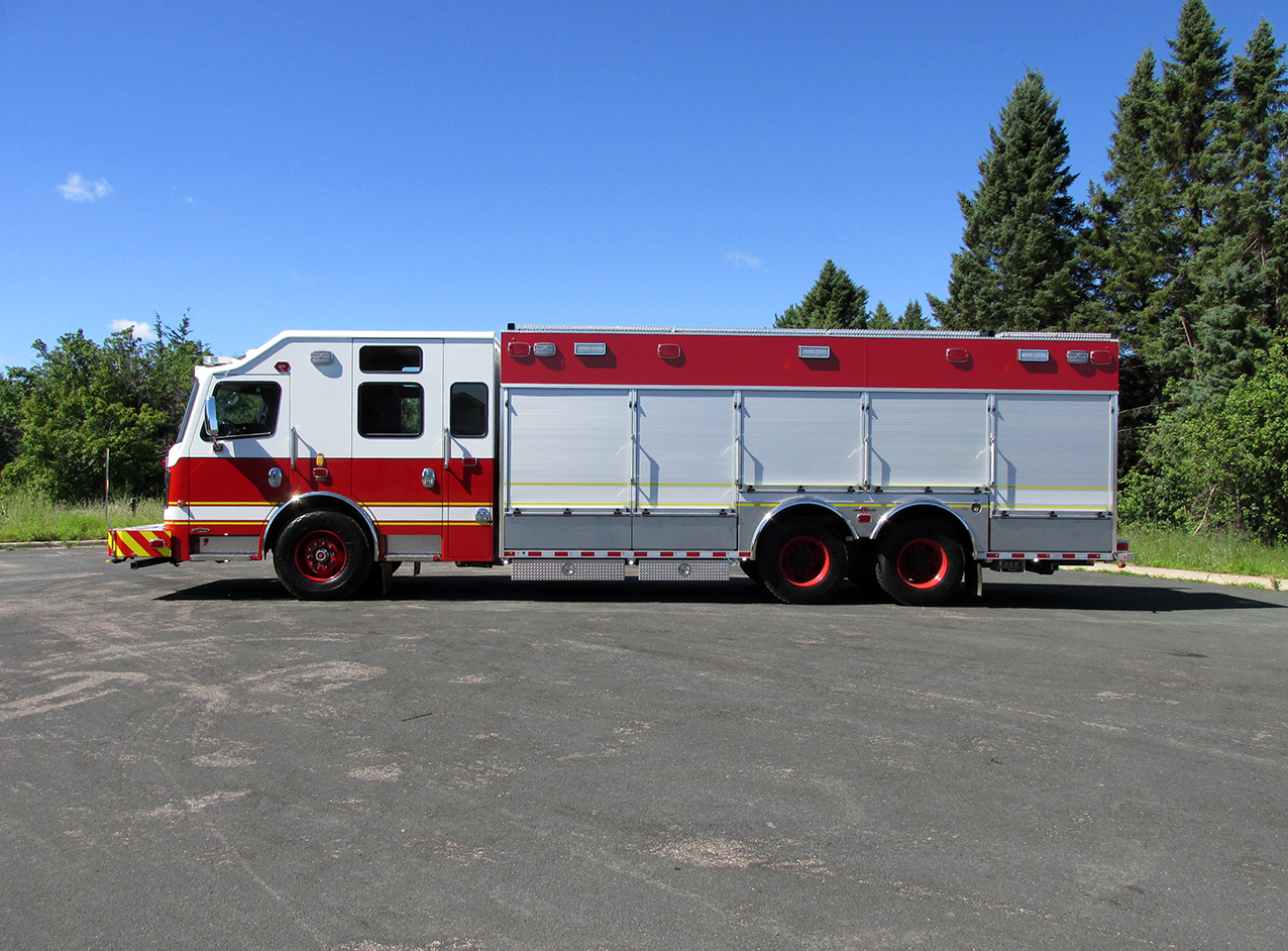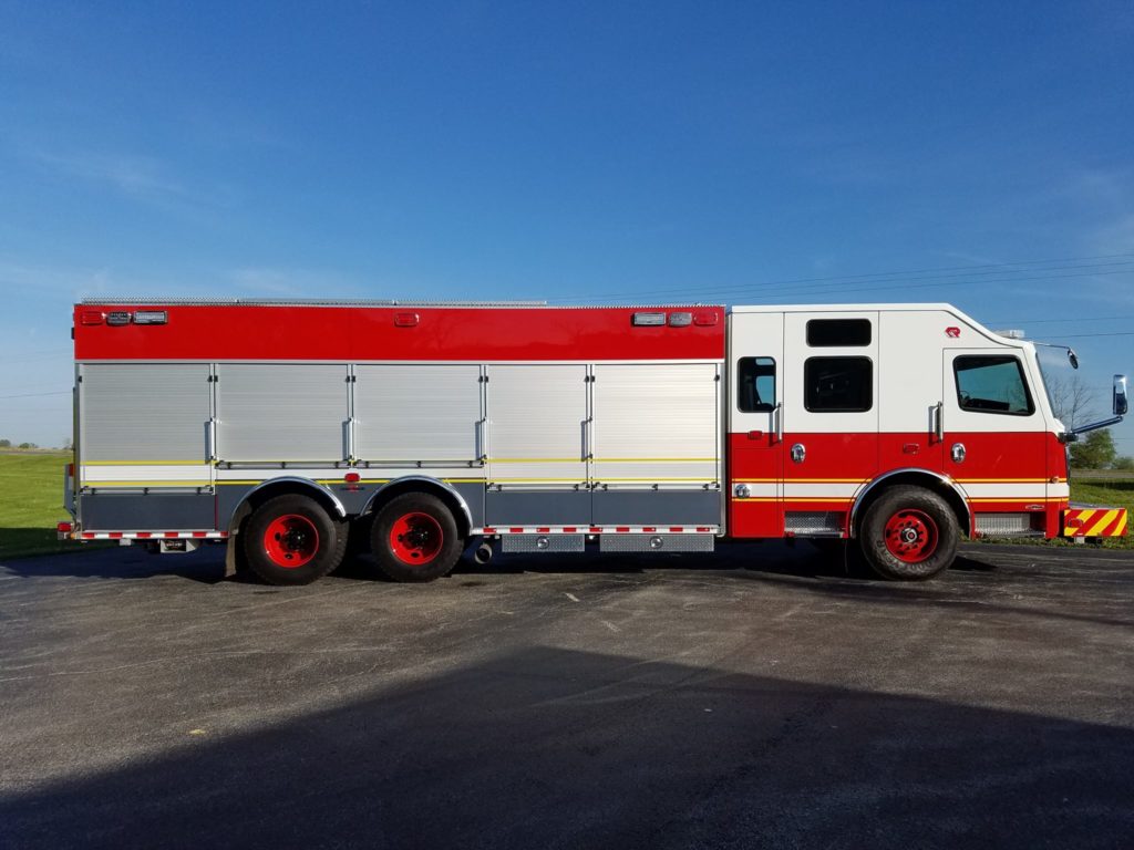 When spec’ing their new Heavy Rescue, Vander Fire Department chose a 24′ aluminum body mounted on a 4-Door Spartan Gladiator LFD chassis, which houses a Cummins X12 engine. This apparatus comes fully stocked with Hurst extrication equipment, KL series Light Tower, Warn Zeon winch, heavy-duty cargo trays and much more.