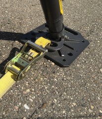 Often on side resting vehicles, once a strut is placed the fixed end of the ratchet strap is too long to tighten the strut.